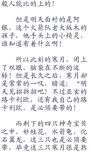 寒月在房间之中闭上双眼,双手交叉,枕在脑后,想着明天要出场的小精灵!