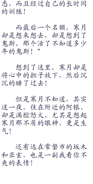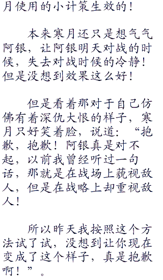 其实对于明天的作战,寒月知道所谓的战术根本就没有可能,毕竟实力差不了多少,而且小精灵更是为知,所以只能见招拆超了!