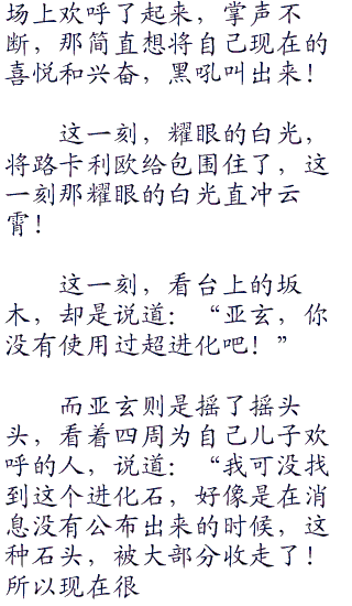 而作为这一次比赛的解说员,则是直接咆哮的说道:“超进化,就是超进化!刚刚我们看到水箭龟的进化便是超进化!