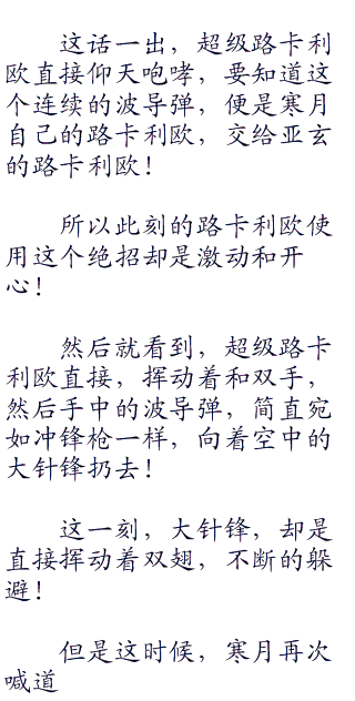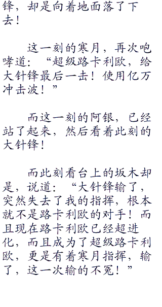 这一刻,寒月直接哈哈大笑了起来,然后大喊道:“路卡利欧,既然阿银指挥不了大针锋,那我们两个就和大针锋一个,好好的战斗一次!”