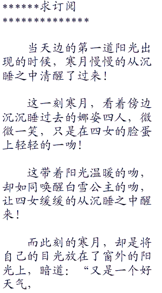 寒月坐在一个躺椅上,手中结果傍边艾莉佳递过来的一杯浓郁的咖啡,轻轻的嘴边一抿!