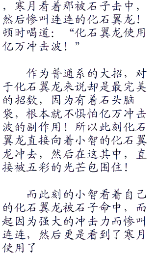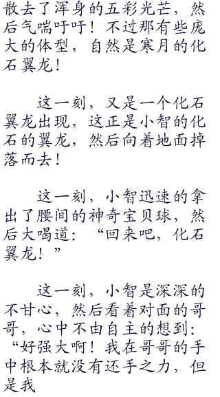 此刻的小智,右手死死的握住手中的神奇宝贝球,然后大喊道:“出来吧!化石翼龙!”