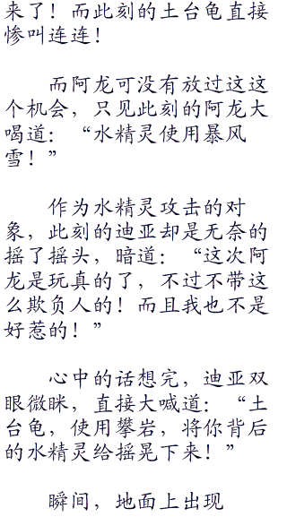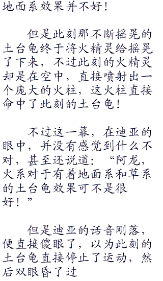也就是那一刻,水精灵直接融进了土台龟背部的一个水渍之中,这个水渍则是刚才被水之波动打湿的!
