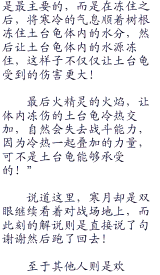 被冻住的是土台龟背部大树的树根,因为被冻住了树根,估计此刻从大树上的绝招已经用不出