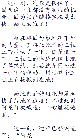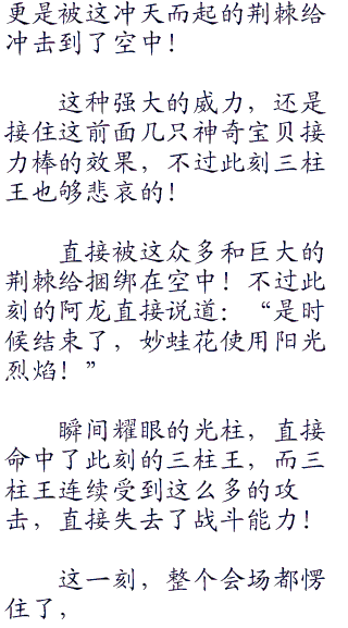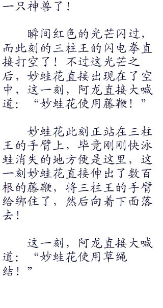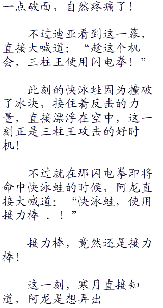 不过此刻的阿龙却是看着天空,然后说道:“快泳蛙,使用急冻光线,将你身边的水流变成冰块,向着三柱王攻击!”