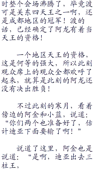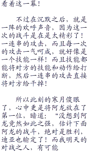 说道了这里,寒月点了点头,不过心中对于接下来的比赛更加的期待了!