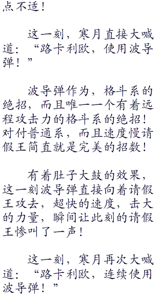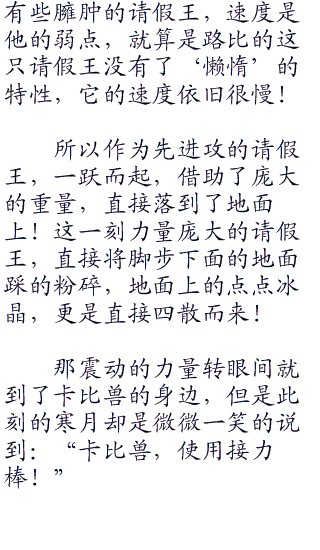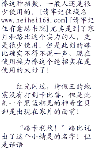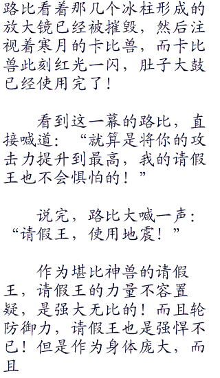 不过现在路比面对的可是寒月,寒月的实力可以说和路比旗鼓相当,甚是寒月还站着上风,比较寒月自身的能力,还有强大的小精灵,这些不是路比能比的,虽说路比的神奇宝贝强大的很多,但是寒月的神奇宝贝的数量要比路比的多得多!