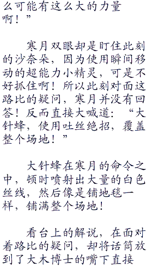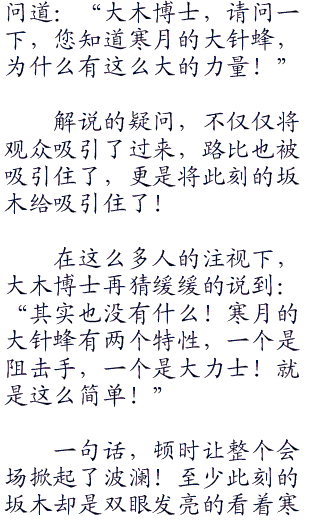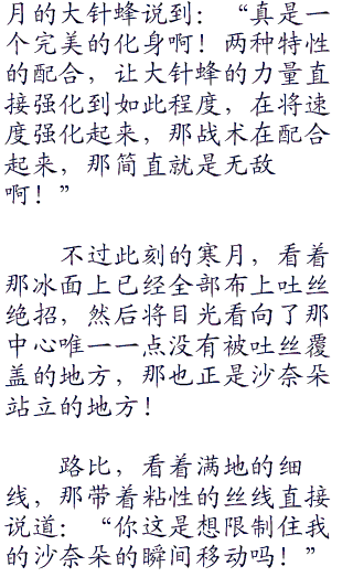 不过寒月的大针蜂,可是不一样!有着阻击手和大力士两个特性!普通攻击都有着数倍的伤害,而且寒月的大针蜂力量极大,甚至能够和路比的请假王竞争一二!