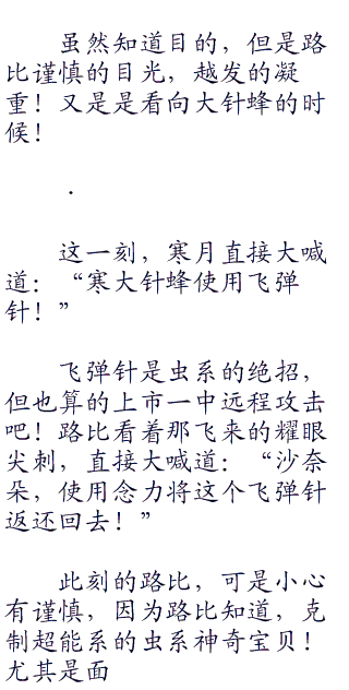 寒月,双眼看着那路比!而路比,在大针蜂的身上扫过一眼,双眼之中出现了一丝谨慎!