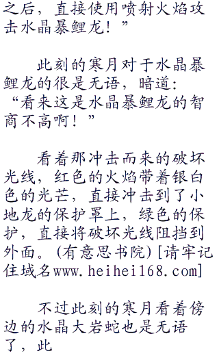 看到这一幕的水晶大岩蛇,身体之上竟然是升起了一道耀眼的水晶颜色的保护罩,看到这奥护照的瞬间,寒月直接无语了,暗道:“连保护都变成了水晶颜色了吗,真是变异的彻底啊!”