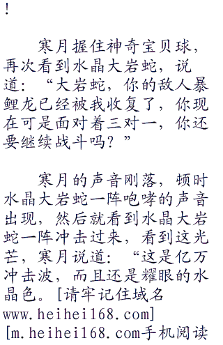 目光之中,带着一丝震撼,但是目光之中也带着一丝兴奋,毕竟越强大,寒月收复这只水晶大岩蛇也越有意义!