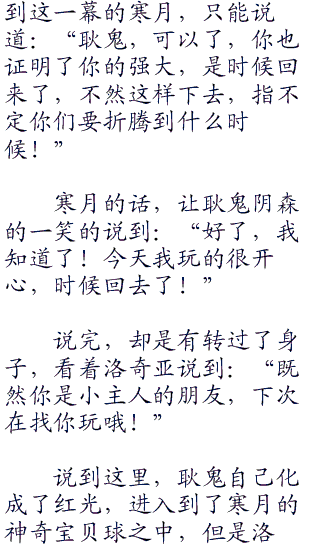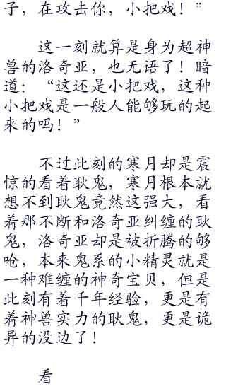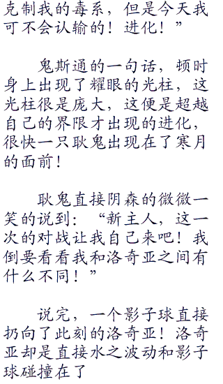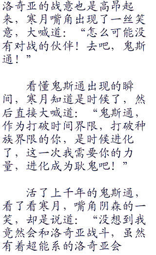 再一次被洛奇亚打败,但是寒月的心中没有办点伤心和退却,有的知识无尽的战意!这一刻寒月再次大喊道: