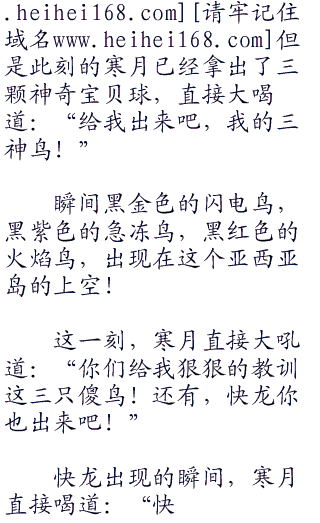 这一刻,寒月转过头,看着身后的小智等人,直接喝道:“速度离开这里,不要在给我添麻烦!”