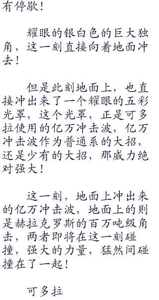 但是此刻赫拉克罗斯,却是一副开心的样子,而且双眼出现了火焰一样的色彩,然后看着此刻的可多拉,然后双手出现了耀眼的光芒,然后双手举起,迎着可多拉冲了过去!