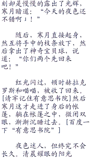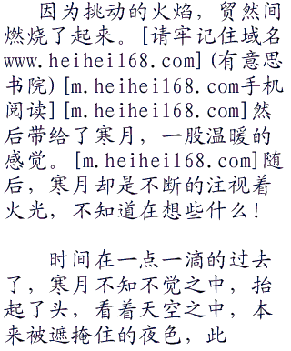 寒月正拿着树枝拨弄着眼前的火焰,火焰烧的很旺,那从背包之中拿出来的木炭,却是在火焰之中发出耀眼的光芒。略带柔和的火光映射黑暗的森林。寒月长长的叹了一口气,听着耳边偶尔传来的阵阵虫鸣,却是显露出一丝安详。