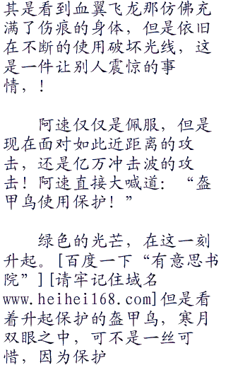 寒月却听的清楚,常磐之力让寒月听到,血翼飞龙对着盔甲鸟说道:“刚刚的那招实在是太舒服了,挠痒痒正好!”