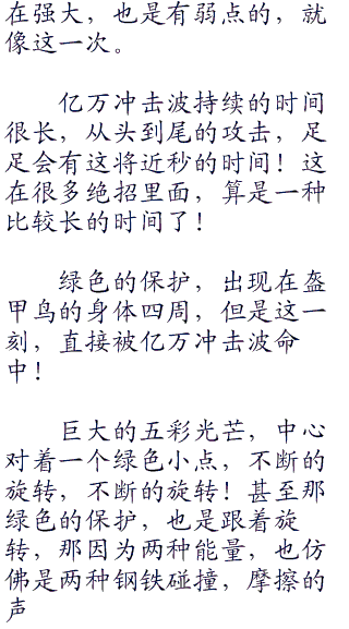 寒月听到这话,多少有些相笑,但是寒月知道,这是血翼飞龙的防御力却是强大,尤其是那腹部的防御力。确定了血翼飞龙强大的防御力,寒月直接大喊道:“血翼飞龙,不要玩了!使用亿万冲击波,解决掉盔甲鸟!”