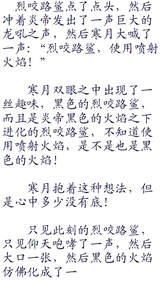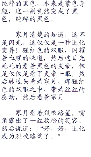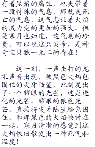 寒月知道,此刻的尖牙陆鲨在坚持着,坚持着那火焰的侵蚀,然后在这火焰之中进化!