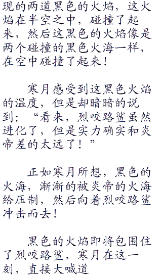 寒月看着这团黑色的火焰,目光之中虽然有些担心,然后直接大喊道:“尖牙陆鲨,坚持住!在这火焰之中坚持住,坚持到你进化的那一刻!”