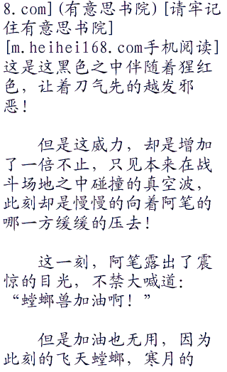 忽见,一道猩红色的刀光,化成了一道猩红色的刀气,向着不远处阿笔的螳螂兽杀去,这猩红色的刀气,就好像真正的刀气一样,虽然这仅仅是真空波!