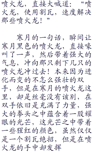 但是这时候,寒月看着一只喷火龙,这只喷火龙,没去和寒月的喷火龙去战斗,仅仅是在哪里站着,没有行动的意思。