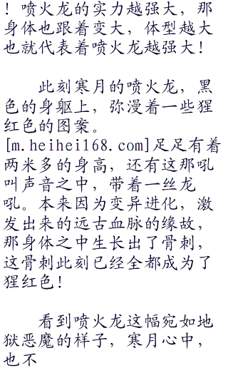 但是寒月看的清楚,此刻的喷火龙,那身体之中,不断的浮现黑色和猩红色的气息,尤其是随着时间的推移,那身上猩红色的气息越来越浓,就好像是是一个要浴血的魔神一样!