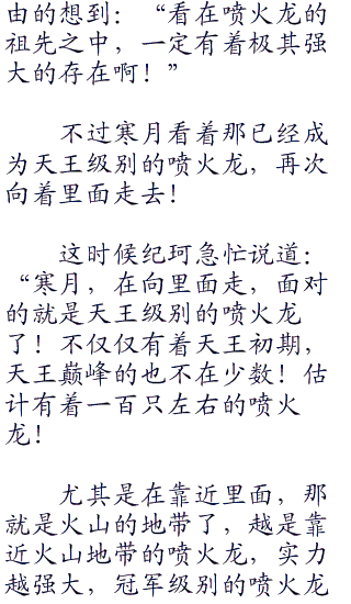 然后再次扬天咆哮,身上出现了红色的气息,将其包围,然后化成了一个红色的光柱一样的东西,然后直接咆哮了一声,这血红色烟消云散,但是寒月清楚的知道,这一次喷火龙成为了天王级别的喷火龙!