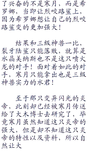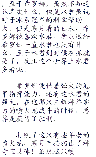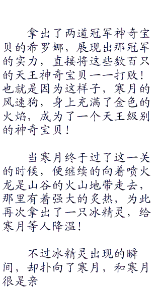 寒月无奈,其实寒月还是相信有的,但是前面的喷火龙已经让寒月感觉到这个喷火龙山谷的强大!按照纪珂爷爷的爷爷诉说,这里面有着强大的喷火龙,但是能够到达这里的人实在是太少了!