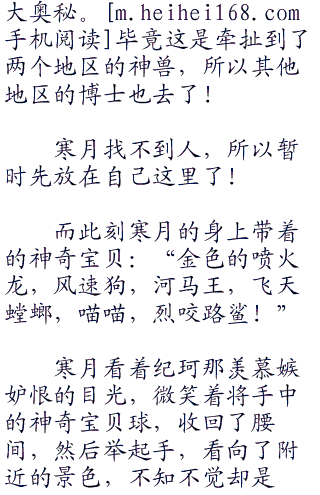 纪珂不爽,寒月却爽快,嘴角带着抹不开的笑容,然后左手牵着希罗娜的小手,右手上下抛动这金色的神奇宝贝球!寒月是开心,内心之中在欢笑,不过寒