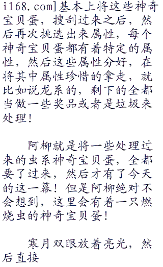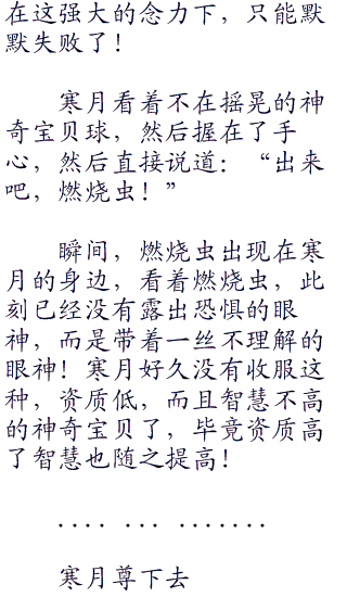 寒月清楚的知道,在神奇宝贝之中,虫系小精灵的数量绝对很多,一个森林之中,虫系的神奇宝贝一抓一大把,但是轮强大来说,虫系神奇宝贝还真没有几个强大的!