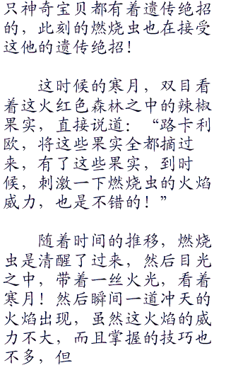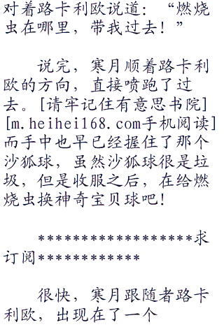 寒月此刻,双眼带着震惊的目光,看着路卡利欧,然后嘴中不禁说道:“燃烧虫,你确定是燃烧虫!”