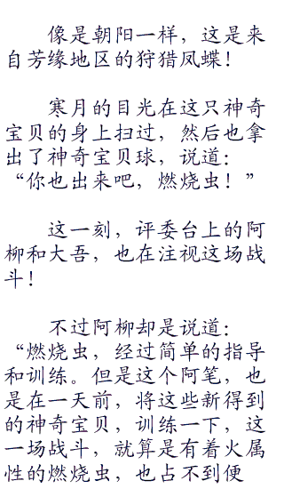 阿柳兴奋的目光,看着此刻已经走到捕虫镇上的训练家旁边的寒月!