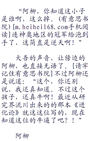 阿柳,直接无视了大吾的话语。然后说道:“那是希罗娜啊,我去,原来这就是希罗娜喜欢的人,将悟松那家伙给教训的人啊,这是什么概念啊,这件事让我有种羡慕嫉妒恨的感觉!”