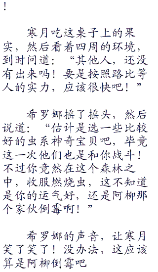 不过看着寒月在这种地方,就收服了一只燃烧虫,那就一个羡慕啊!就像此刻的阿柳,那是一个劲的苦涩着脸啊,然后看着寒月那已经收起了燃烧虫,不禁说道:“大吾,我好后悔啊!”