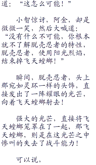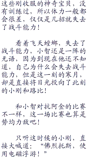 对面的训练家,目光之中,带着不敢相信,然后不禁大喊道:“怎么可能,虫系小精灵会使用喷射火焰,这还是虫系小精灵吗?”