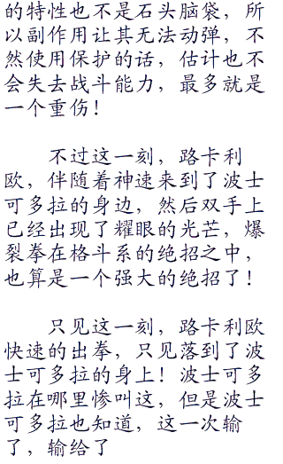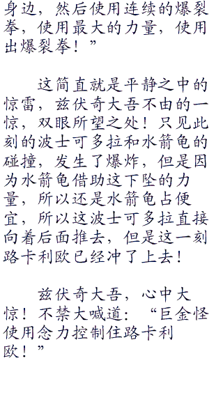 这一刻,兹伏奇看着此刻的水箭龟已经迎向了波士可多拉,瞬间使用了亿万冲击**士可多拉,和不断旋转的水箭龟,碰撞在了一起,然后在空中不断的碰撞!