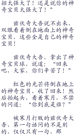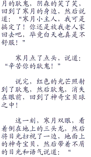 四只神奇宝贝被收了回来,但是这一刻,寒月已经将目光看向了那,发出阴森笑容的耿鬼处!