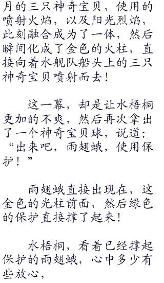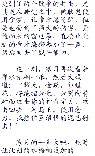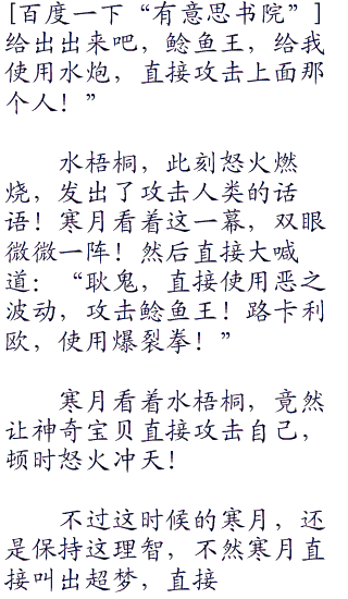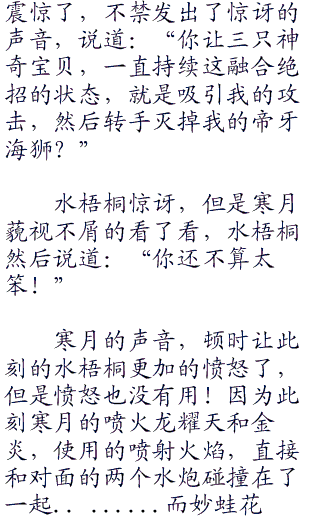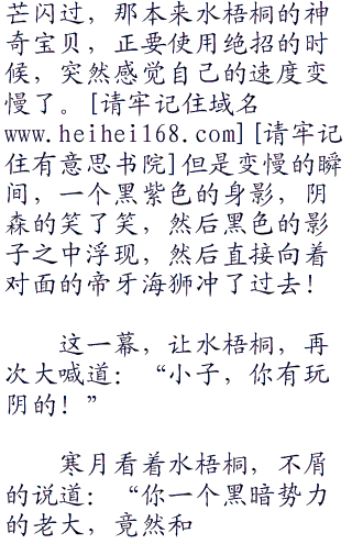 水梧桐不得不骂,因为这招使的实在是太过阴险了。不过寒月到时候无所谓,本来这招就是学自阿金,要阴险也是阿金阴险,而且和敌人战斗,什么事情不能做,这又不是比赛!