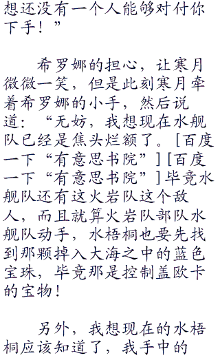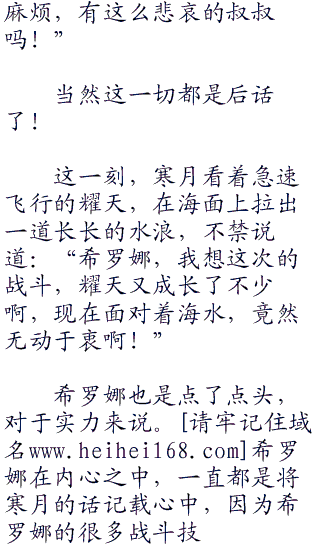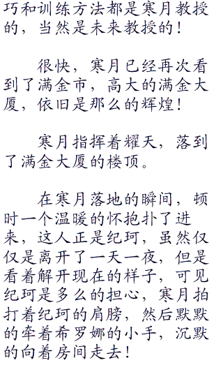 寒月很开心,真的很开心!傍边的希罗娜,也呵呵的陪着寒月在笑!