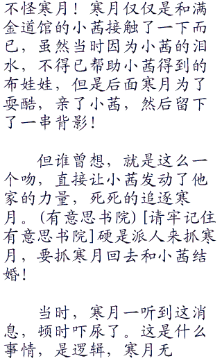 但是,寒月刚说完,顿时又是一顿猛掐啊!这让寒月更无奈了!