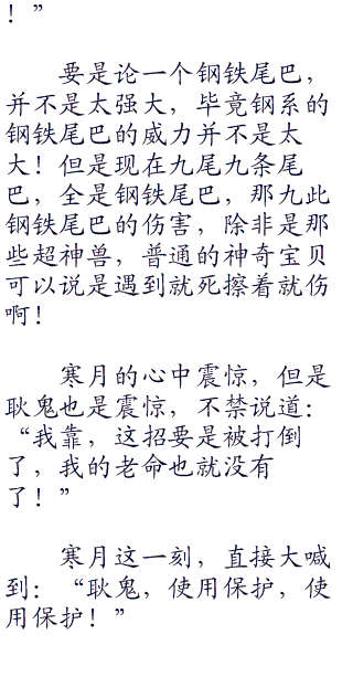 灿烂的光芒在寒月的眼中,却是震惊,寒月不禁的说道:“这是钢铁尾巴,九条尾巴全都是钢铁尾巴,这是何等的强大啊