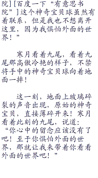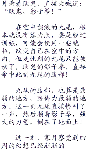 当那空中的烟雾散去的时候,这一刻的九尾双眼之中没有看到了耿鬼的影子,仅仅是看到了寒月。