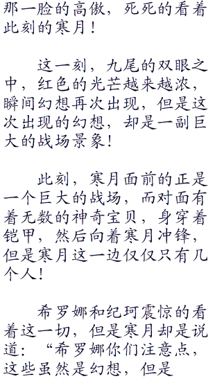 寒月看着九尾的这一幕,不禁的说道:“这只九尾的智商还真是高啊!竟然使用热风去寻找耿鬼!”