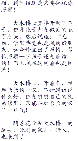 希罗娜站在寒月的身旁,无奈的看着寒月,不禁说道:“寒月,你是怎么了!从你收服九尾之后,就一直这个样子,你到底和九尾发生了什么!”