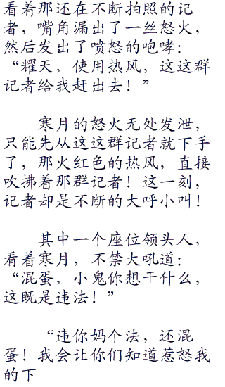 寒月目光之中出现了一丝震惊,但是震惊之后确实一丝狠色和冰冷,双拳死死的紧握,然后目光之中这一丝的凶光,然后不禁说道:“混蛋,小智你个混蛋!你个扫把星,走到哪里都会出现事情!”