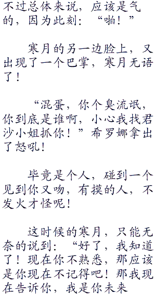 少女,气鼓鼓的脸蛋,直接将压...在自己身上的少年,给推开!然后微微的站起身体,带着怒火的双眼,看着依旧躺在地面上的少年,撒气似的在少年的腿上踢了踢,然后不禁说道:“你个大坏蛋,害的我,失去抓住小丑鱼的机会,混蛋!”