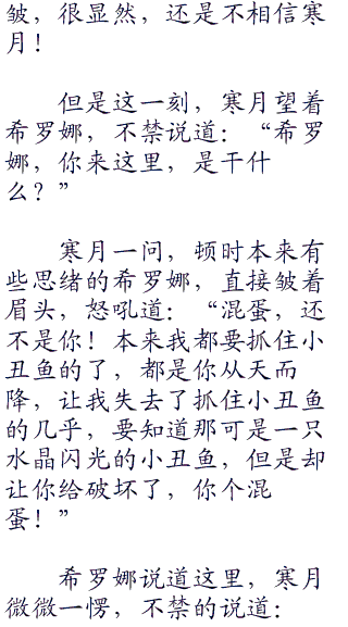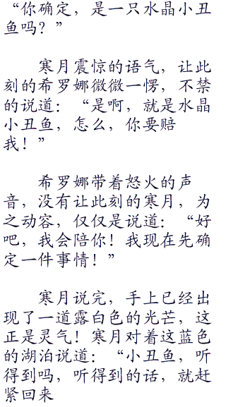 少女,带着一丝温怒,不爽的说到:“混蛋,从那里冒出来的人啊!趁我差点就收服小丑鱼的时候,直接砸到我的身上,实在是太可恶了!”