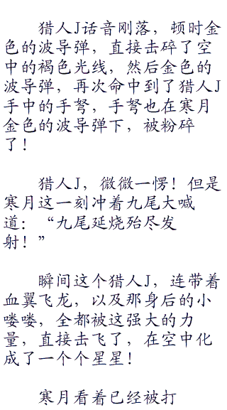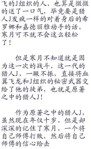 寒月的无视和漠视,让此刻的猎人j,有种被侮辱的感觉,然后大喊道:“混蛋,就算没有血翼飞龙,你也不是我的对手!”
