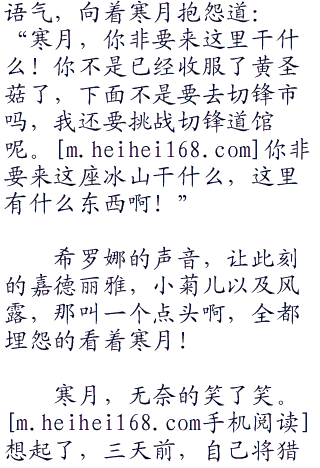 寒月的话,并没有安慰好希罗娜,反而让此刻的希罗娜开始了抱怨。希罗娜带着不满的