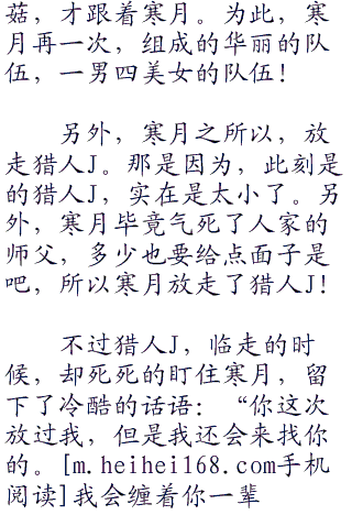 寒月依旧是单薄的衣服,走在这寒风刺骨的冰天雪地之中,寒月没有感觉到冰冷,除去寒月那非人的体质,还有有着傍边九尾的火焰!